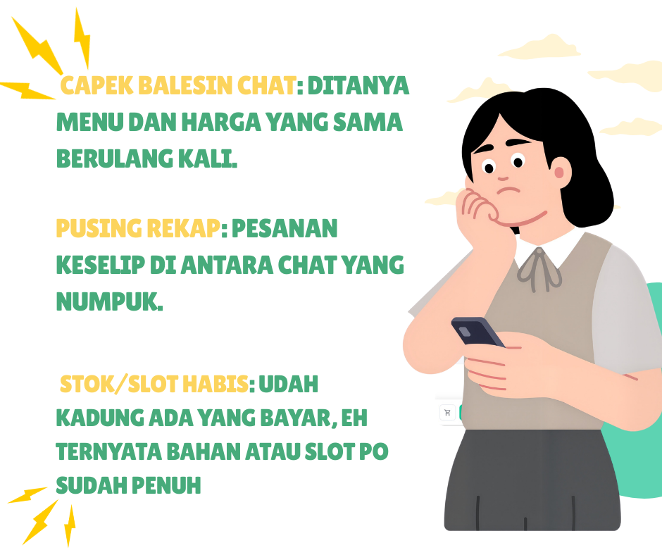 Nggak perlu jago IT. Ubah chat WA yang berantakan jadi pesanan otomatis. Cocok buat kamu yang jualan makanan, sistem PO, atau usaha rumahan lainnya.